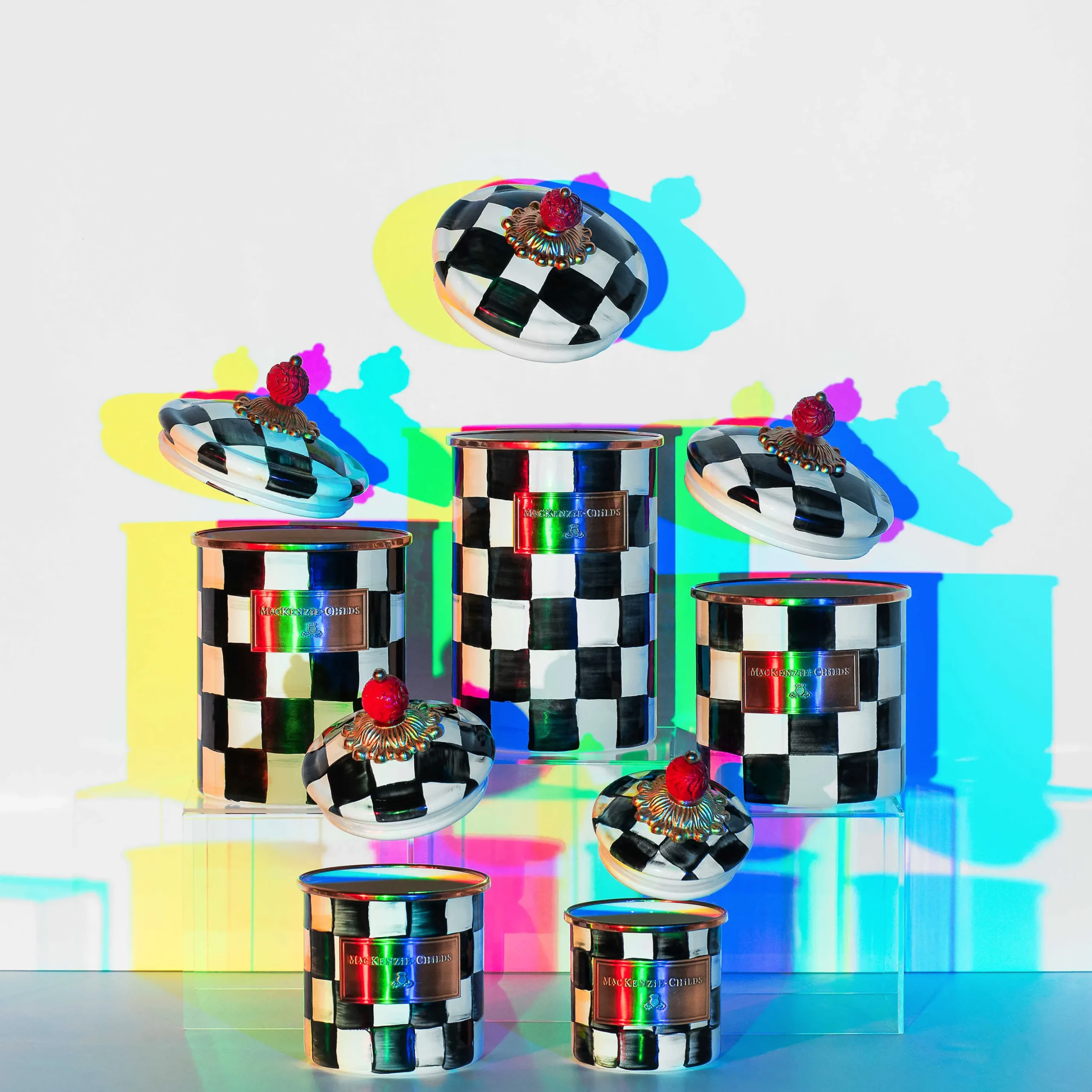 Add To The Endless Possibilities For Our Canisters With The Mini Courtly Check® Enamel Canister. Our Smallest Sized Canister, The Mini Stands Handsomely Alone Or Harmonizes Delightfully In A Set. Keep It In The Kitchen Or Invent New Uses Around The House. It’S Perfect For Cotton Balls And Swabs In The Bathroom, Pens And Pencils In The Office, Or Knickknacks And Doodads In The Kids’ Room. Each Enameled Steel Canister Is Hand-Painted With Black And White Courtly Checks® And Topped With A Faux Cinnabar Bead Knob.