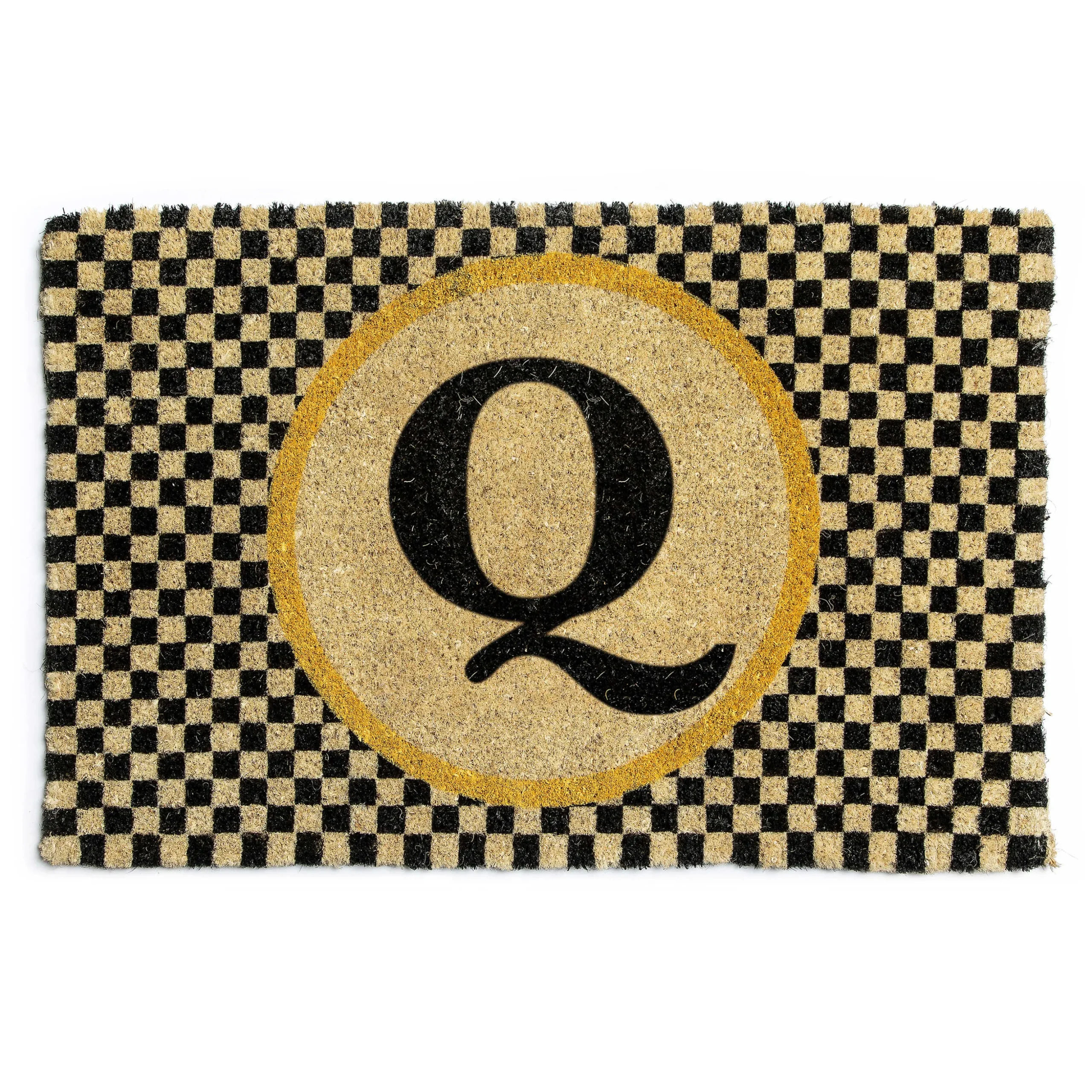 Put Your Stamp On Stylish Salutations With Our Q Single Letter Monogrammed Entrance Mat. It’S Made Of Natural Materials With A Bold, Printed Initial Letter In A Field Of Checks. Use It In Protected Areas, And When Its Useful Life Is Over, You Can Recycle This 100% Biodegradable Mat By Burying It In Your Garden!