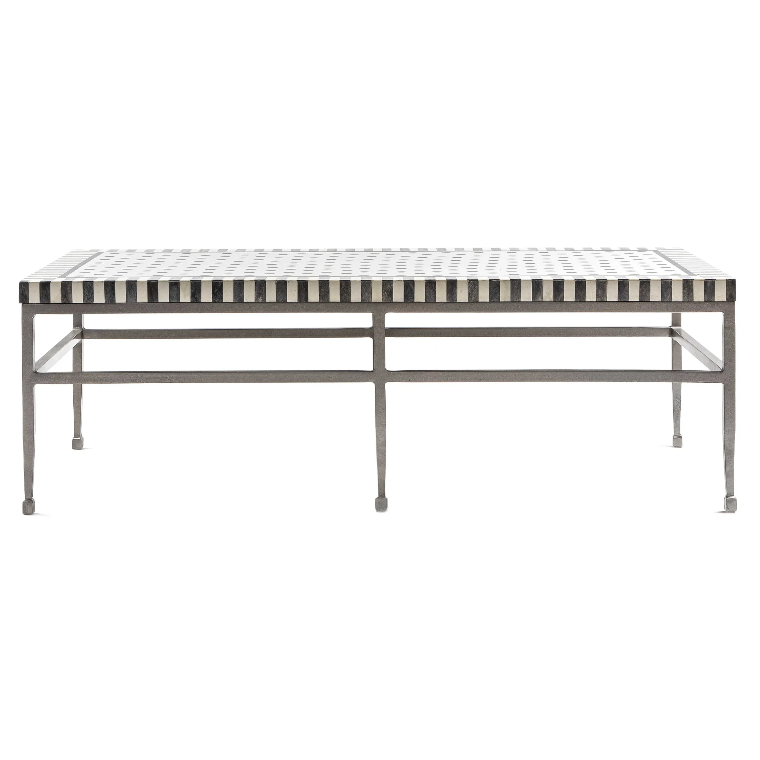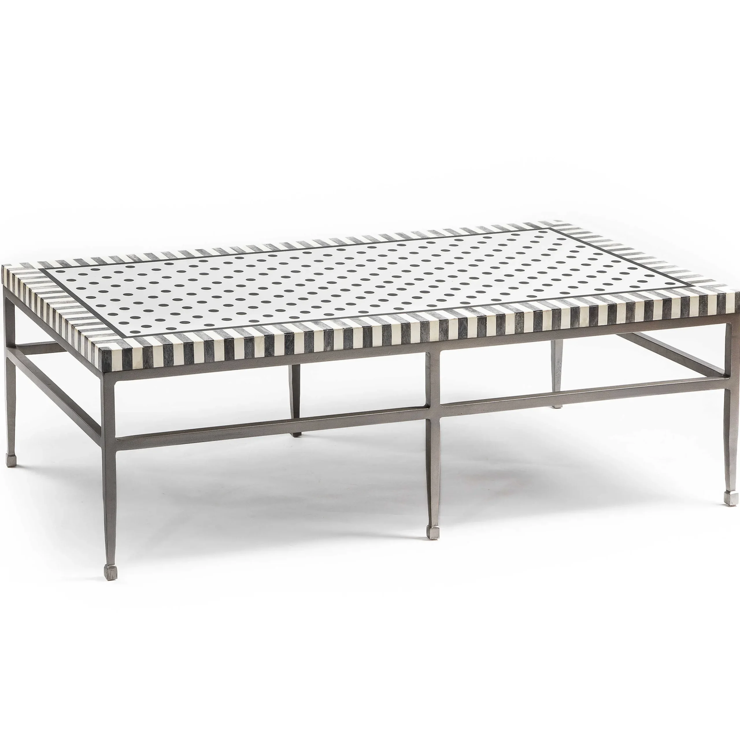 Make A Statement Of Style With The Black Spot On Coffee Table. Fun And Functional, It Features Bold Black Dots On Its Resin Top, Trimmed With Striped Bone Inlay, On An Iron Frame.