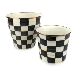 Who Doesn’T Need A Useful Pot To Put Things In? The Sturdy Steel Underbody Of Our Enamel Extra Large Courtly Check® Enamel Garden Pot Is Hand-Painted With Color-Dragged Checks And Rimmed In Bronzed Stainless Steel. For Plants, Naturally, But Also As An Impromptu Ice Bucket Or To Store Rolled Towels In The Bathroom. This Pretty Pot Shines With The High-Contrast Gloss Of Our Most Popular Pattern, Making It A Perfect Complement To Any Decor.