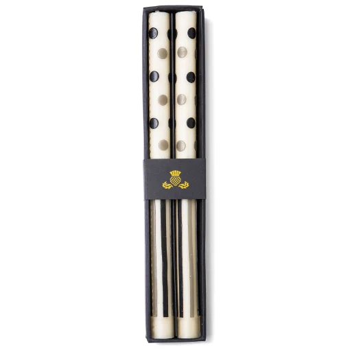Dot & Stripe Dinner Candles – Black & Grey – Set Of 2