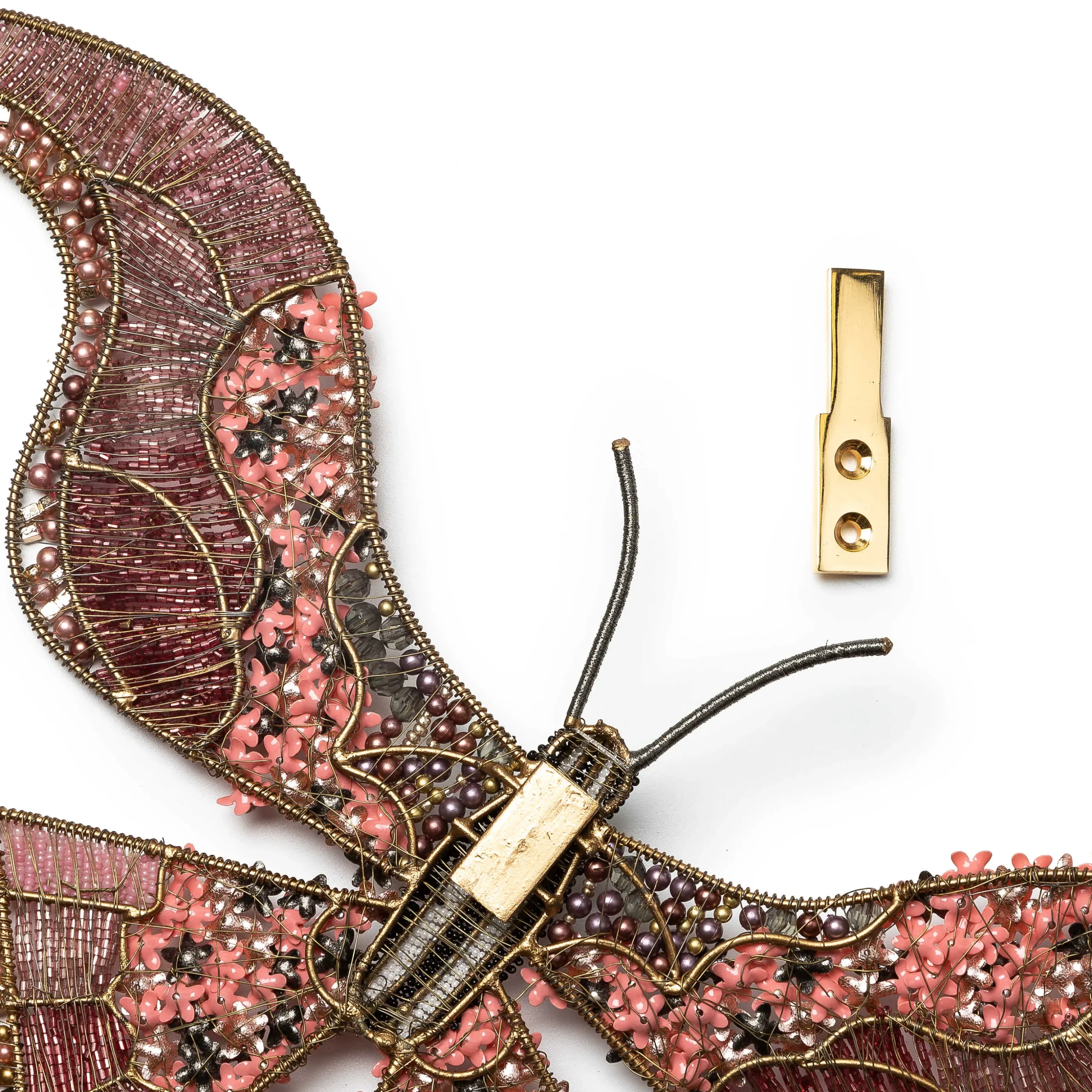 Take A Flight Of Fancy With The Flora Butterfly, Which Is Lavishly Decorated Entirely With Beads In Shades Of Pink, With Gold-Tone And Black Accents. An Adjustable Metal Hanger On The Back Lets You Hang It On The Wall At Different Angles. Pair It With The Starburst Butterfly For A Stunning Display.