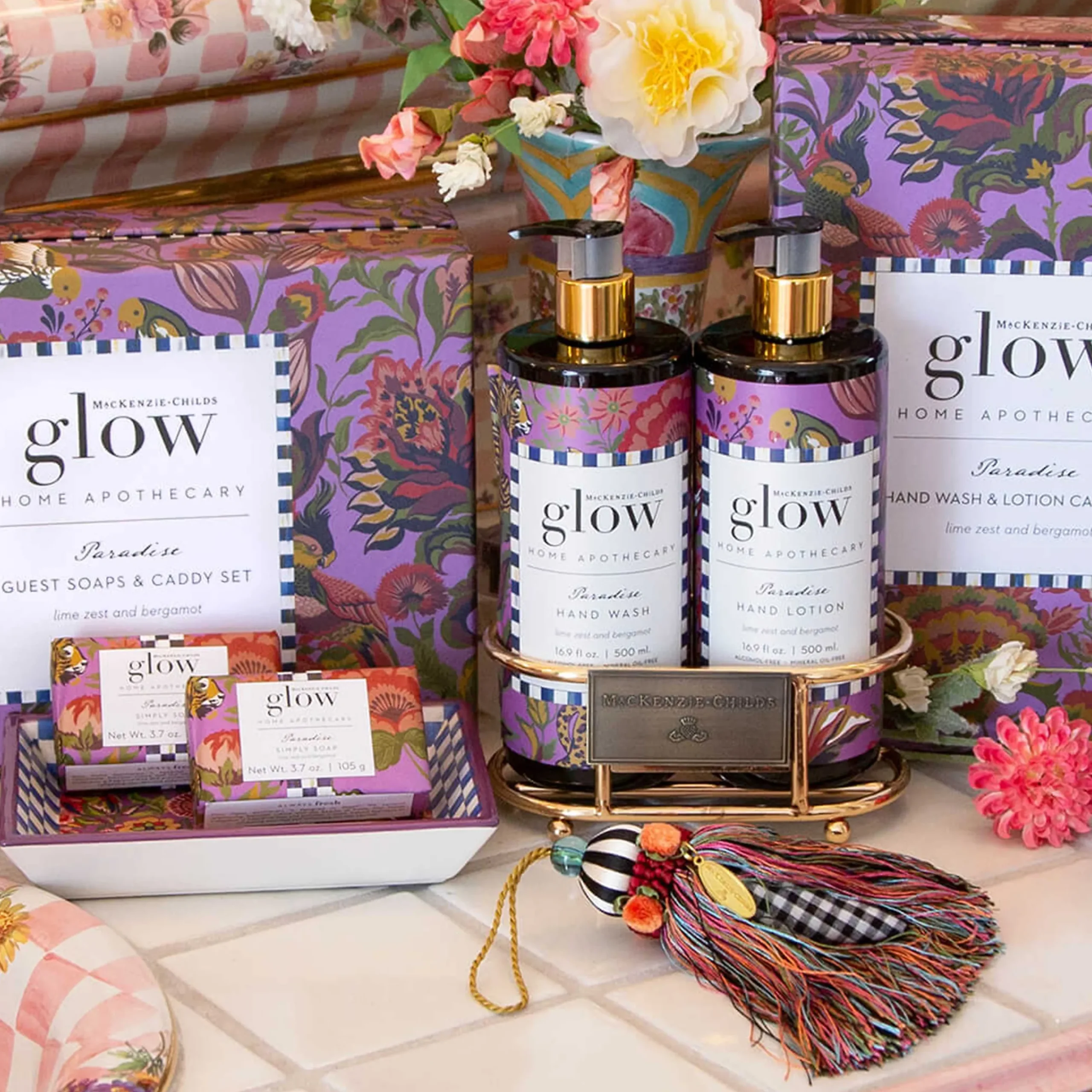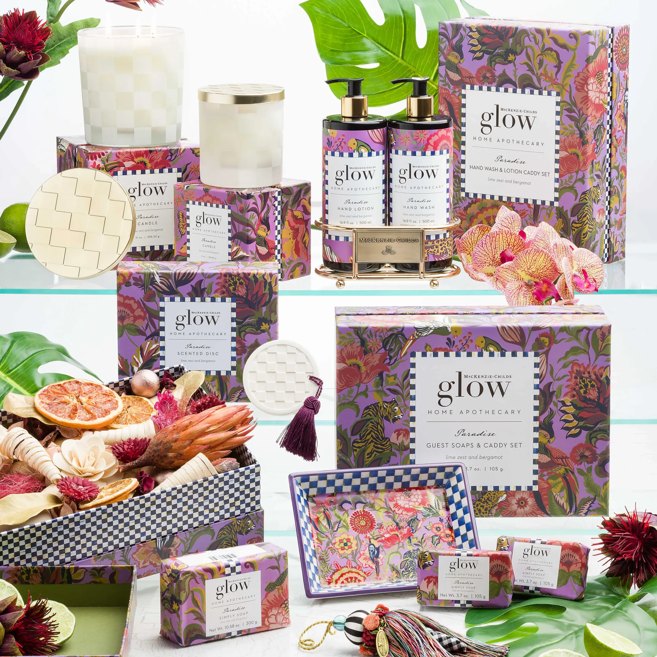 Mackenzie-Childs Glow Home Apothecary Defines The Essence Of Home With Fresh And Inviting Scents. Our Paradise Bar Soap & Dish Set Makes A Great Hostess Gift And Is Presented With A Ceramic Dish Decorated With Our Paradise Print And Trimmed In Royal Check. The Soap Leaves Your Hands Soft And Clean, And The Fresh Scent Is A Blend Of Lime And Bergamot, A Fragrant Citrus Fruit. Set Of Two Bars Of Soap Included.