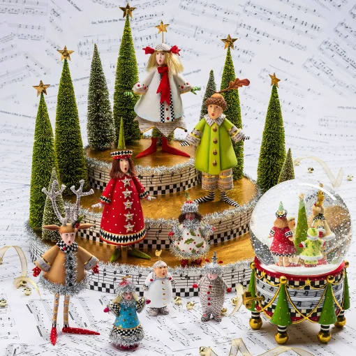 The Patience Brewster Pearl With Red Bows Holiday Caroler Figure Is Sure To Put A Song In Your Heart. Inspired By Songstress Pearl Bailey, This Handmade And Hand-Painted Figure Wears A Star-Topper Hat And Its White Coat Is Decorated With Christmas Carols And Accented With A Big Red Bow And Gold Leaf. Strike Up The Band And Add It To Your Holiday Displays!