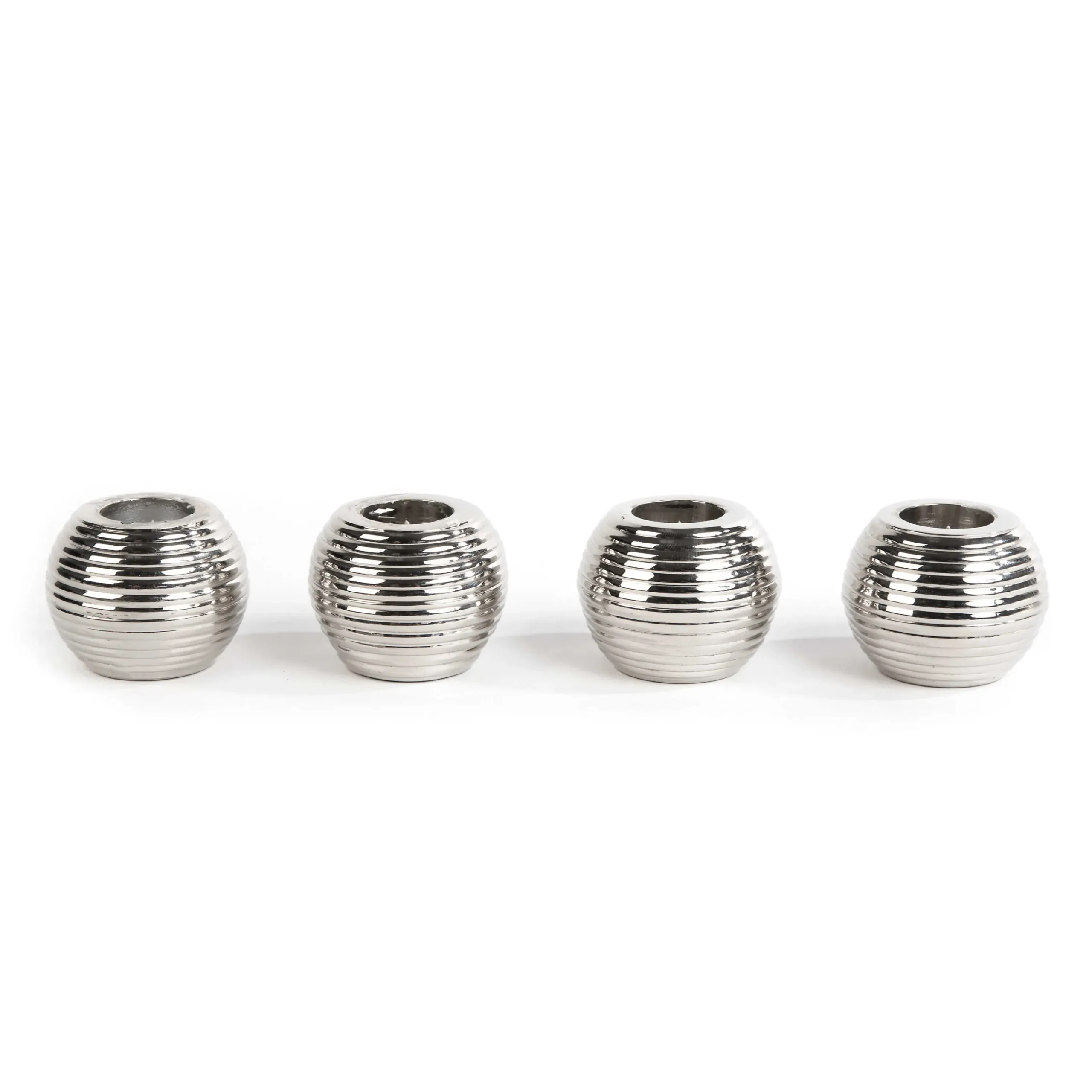 Ribbed Sphere Candle Holders – Silver – Set Of 4
