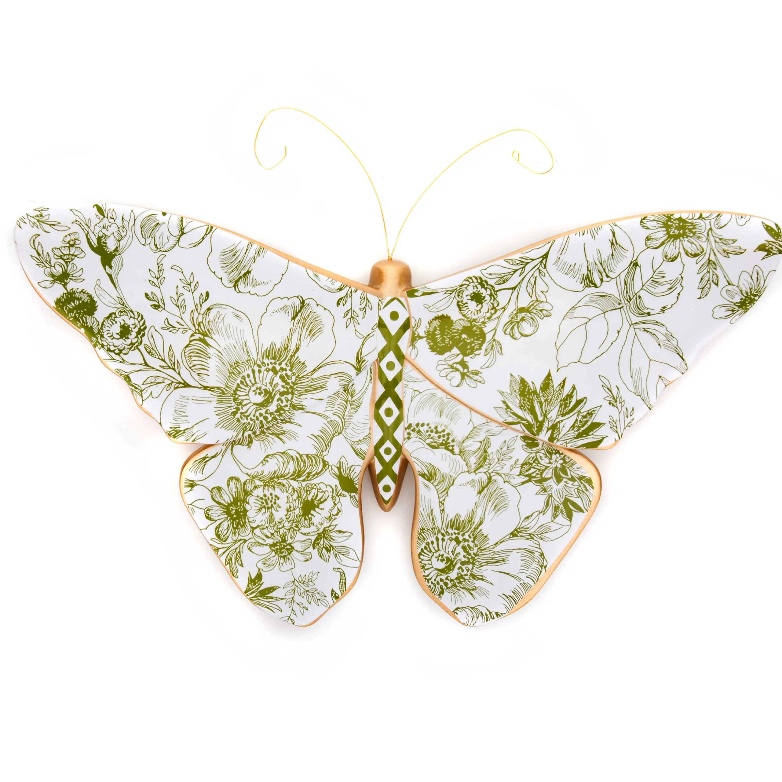 Let Your Walls Take A Flight Of Fancy With Our Green Toile Butterfly. It’S Decorated With Hand-Applied Green Floral Toile Wings, Topped With Wire Antennae. Combine It With Our Other Toile Butterflies In Blue And Pink For A Display That Soars With Color And Charm.